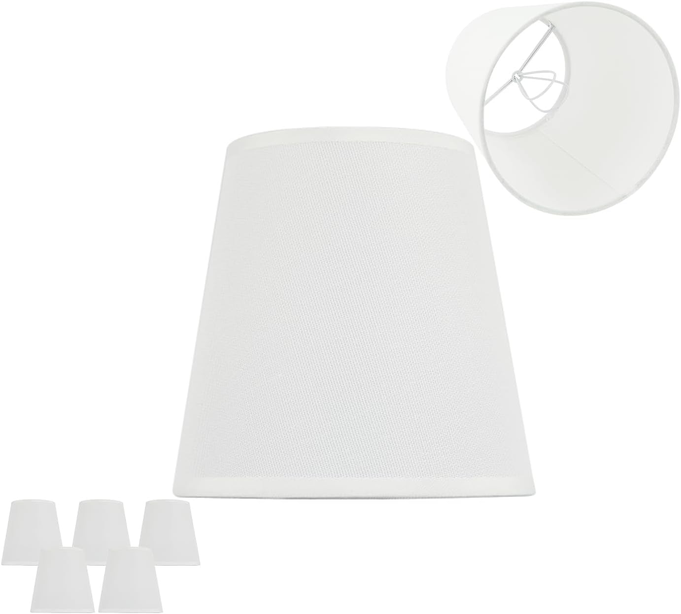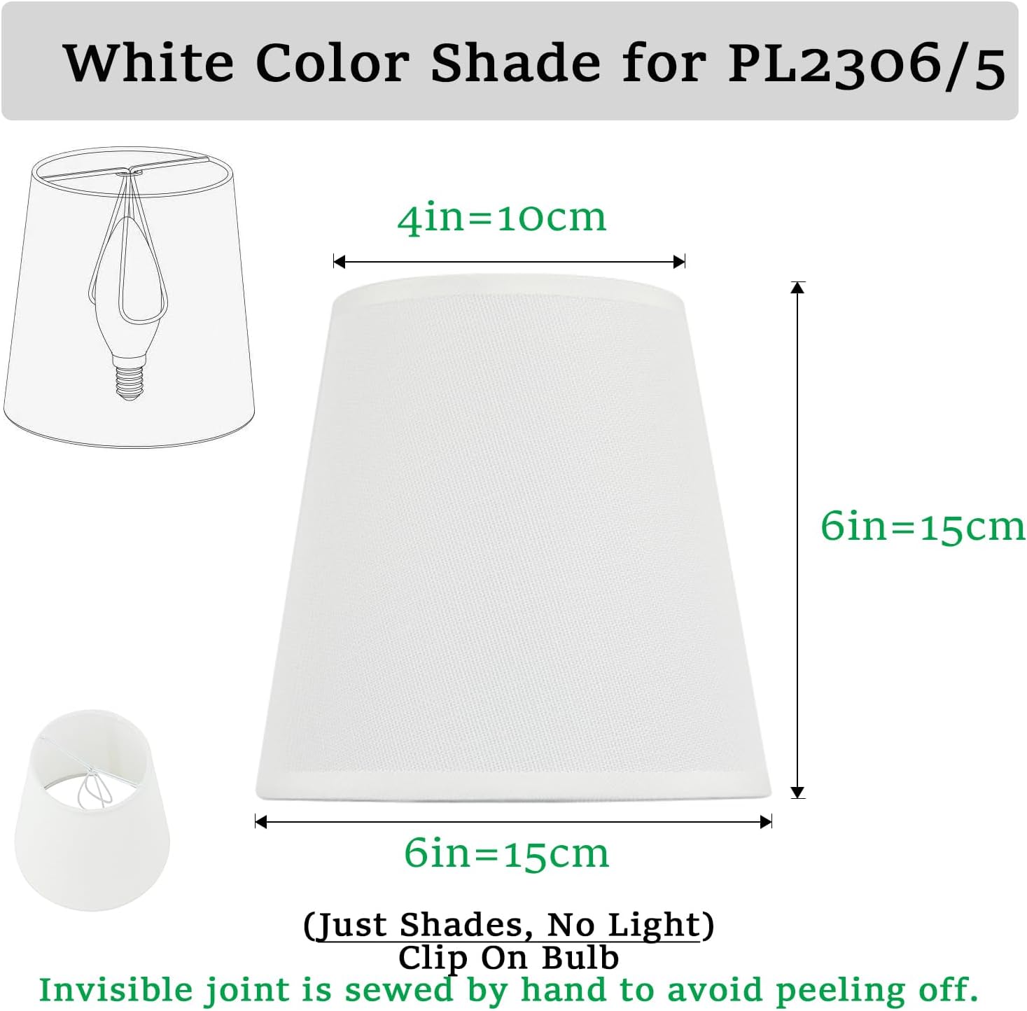 5 Pack Off White Linen Fabric Lamp Shades for PL2306/5, Perfect Fit for 5-Light Chandelier Pendant, Clip On Bulb E12 Socket, Just Lampshades No Light(Large Size, Not for Small Lights, 4.0×6.0×6.0inch)