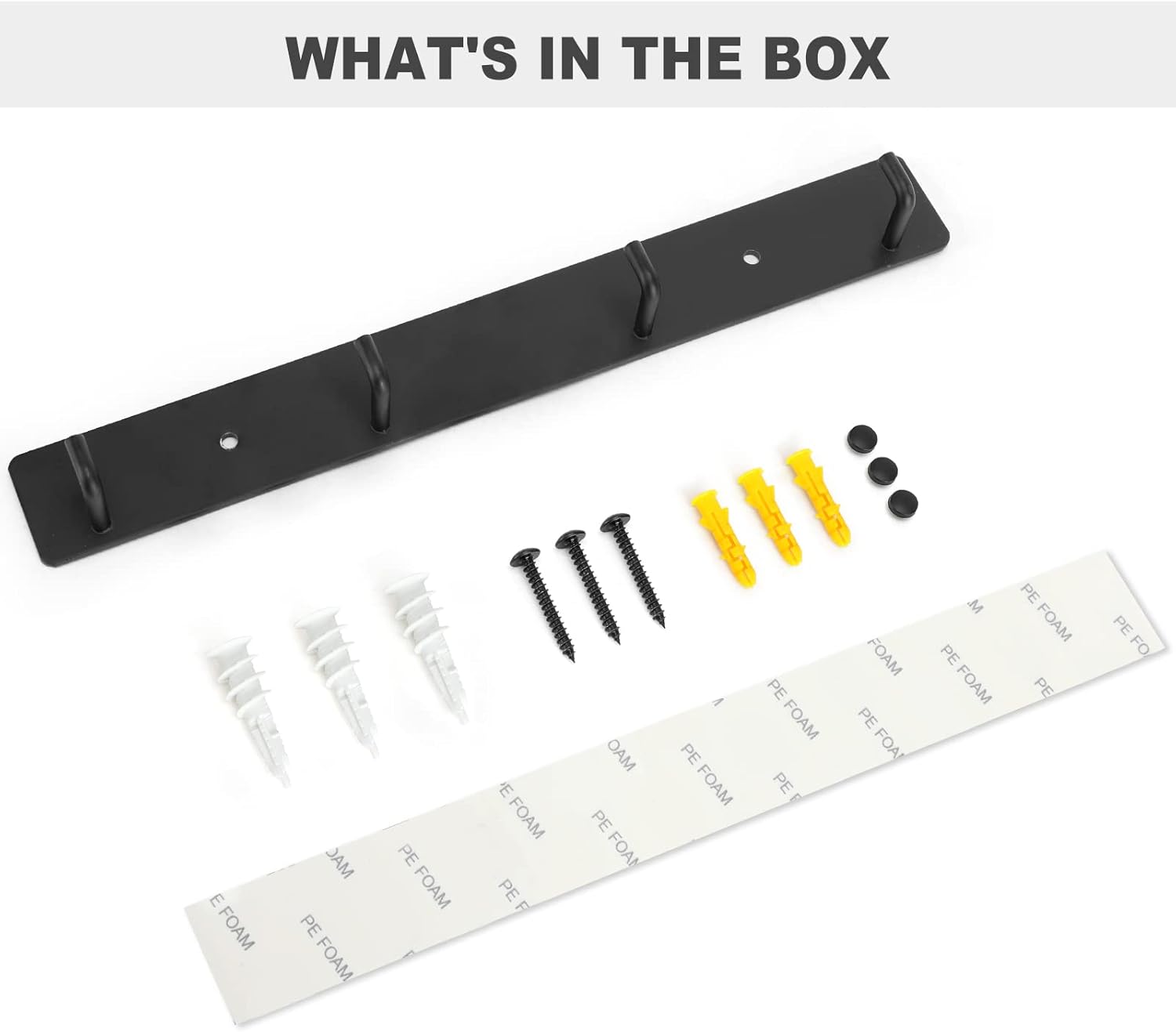 Key Holder for Wall, Key Rack with 4 Key Hooks to Hang Keyrings, Dog Leash, Umbrella, Sunglasses – Key Hanger with Mounting Hardware for Glass, Tile and Wood (10.9” x 1.4” x 1.0”) (Black)